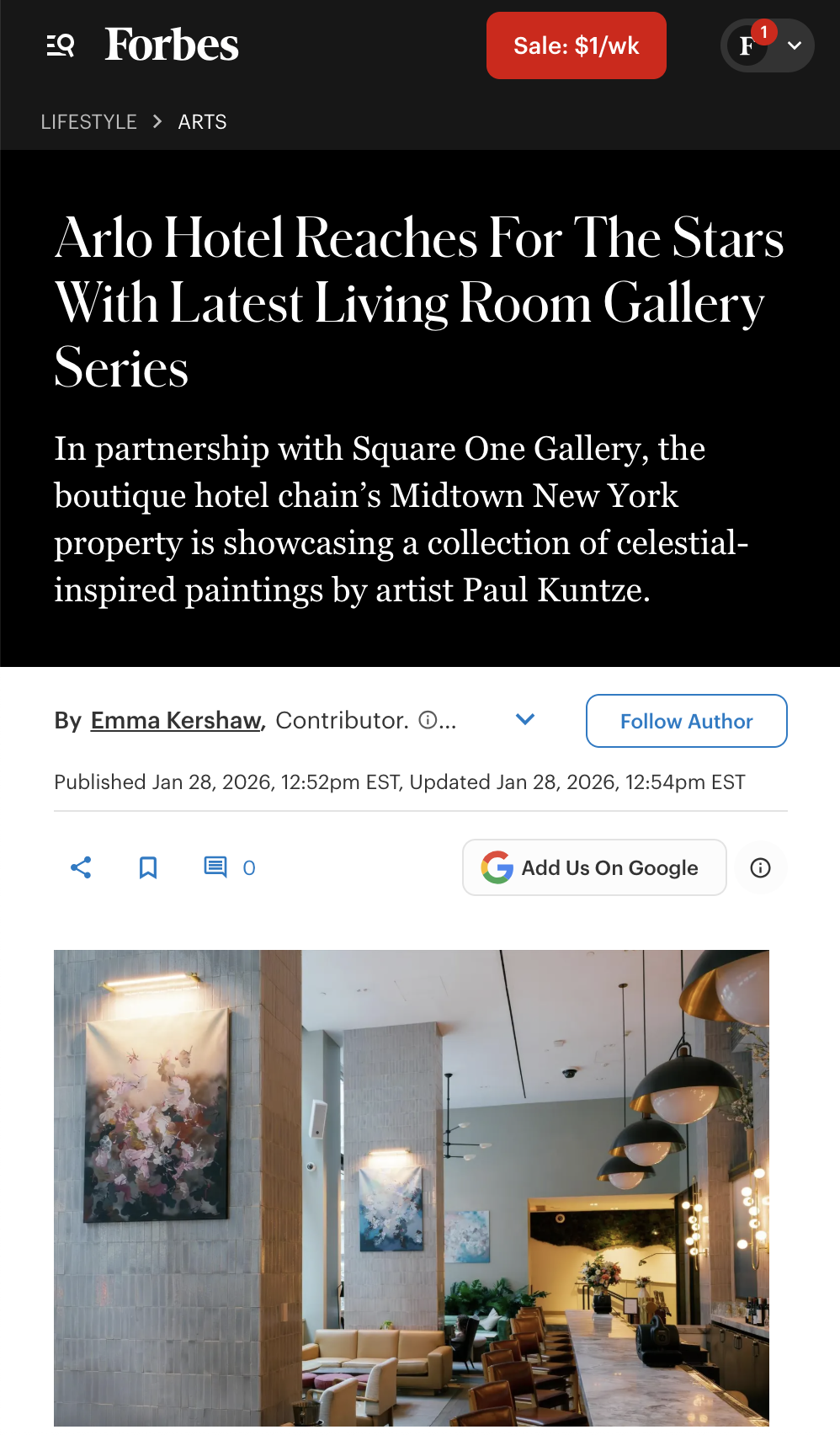 Arlo Hotel Reaches For The Stars With Latest Living Room Gallery Series